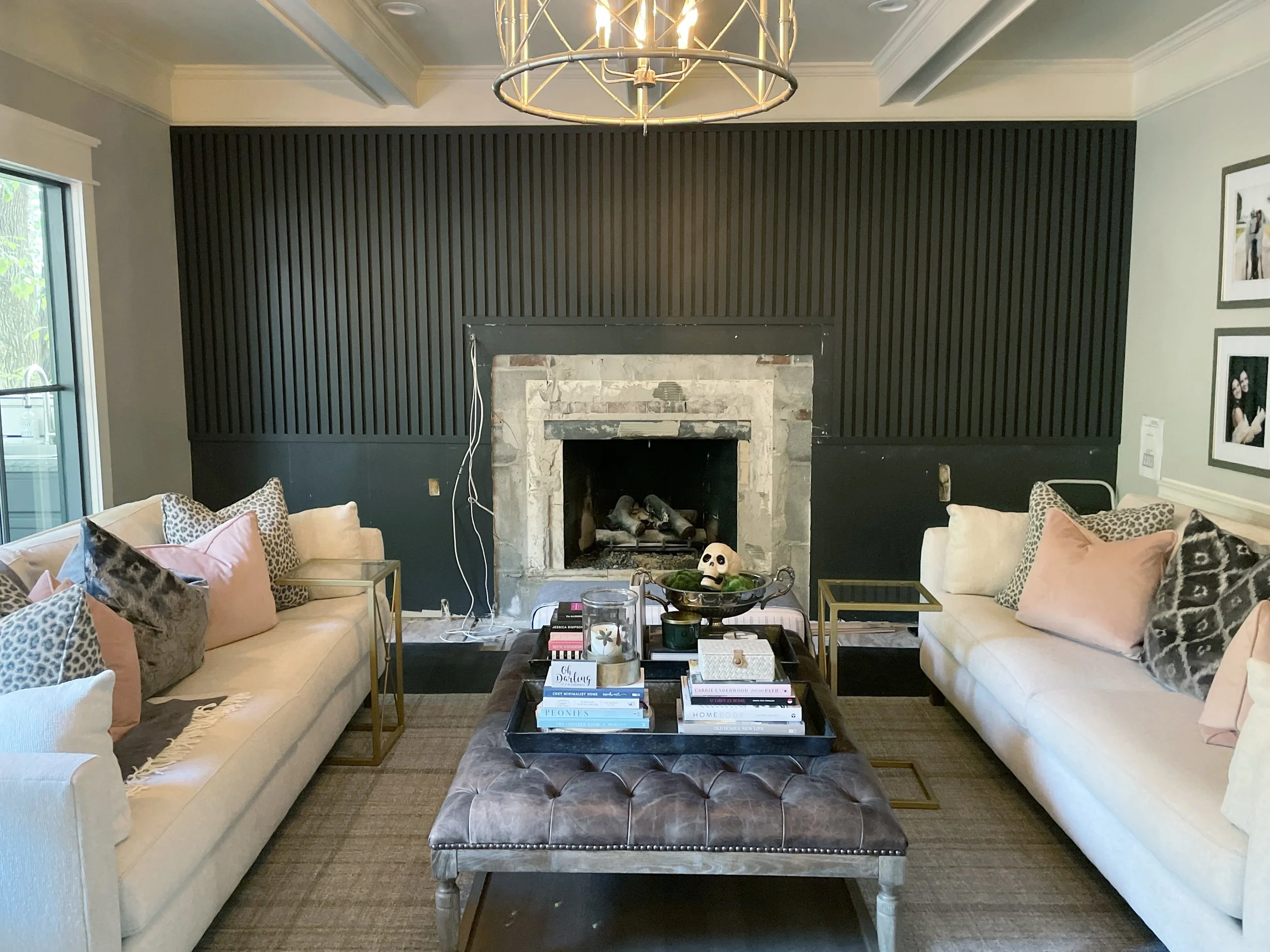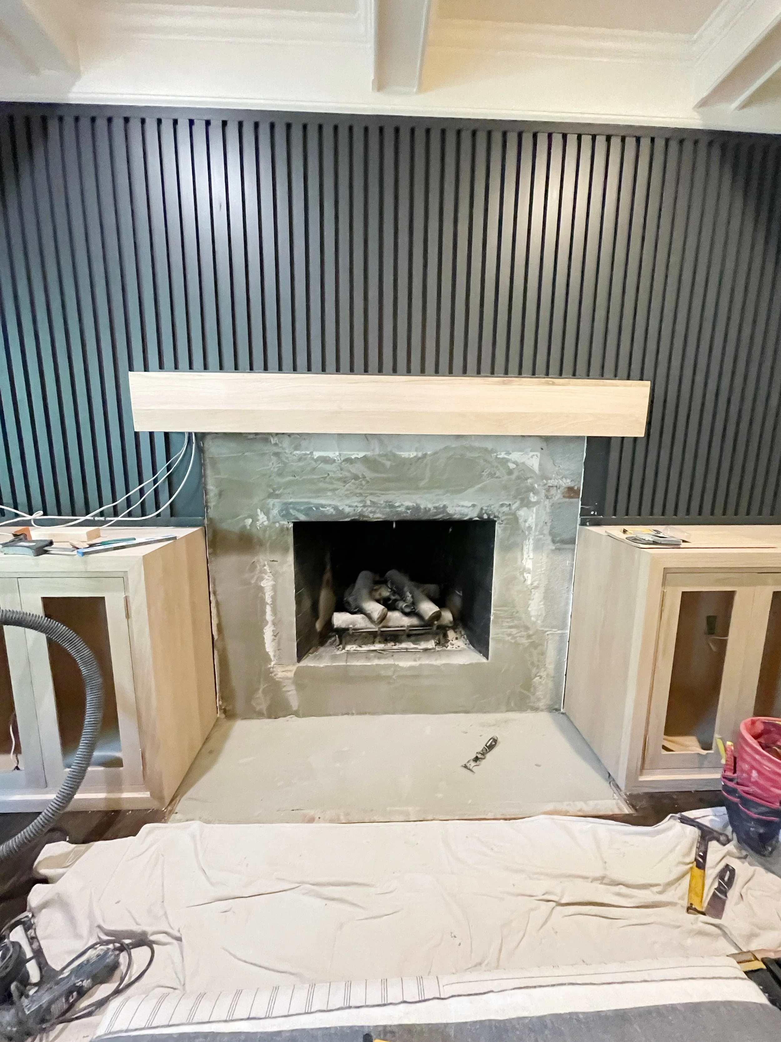 Check out the photos below to watch as the fireplace feature wall goes from halfway there to the stunning reveal!